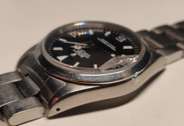 We provide a variety of polishing services tailored to your preferences, including hand polishing to maintain the watch's original shape and machine polishing to restore its factory appearance. We understand that for collectors, maintaining the originality of certain timepieces is paramount, and we respect the decision to forego polishing when necessary. Our services are flexible; you are not obligated to have a full service to receive polishing, as we offer it as a standalone option. However, if desired, polishing is included in the full service. The polishing process also involves a thorough cleaning to remove all dirt particles, ensuring your watch is not only visually appealing but also hygienic.